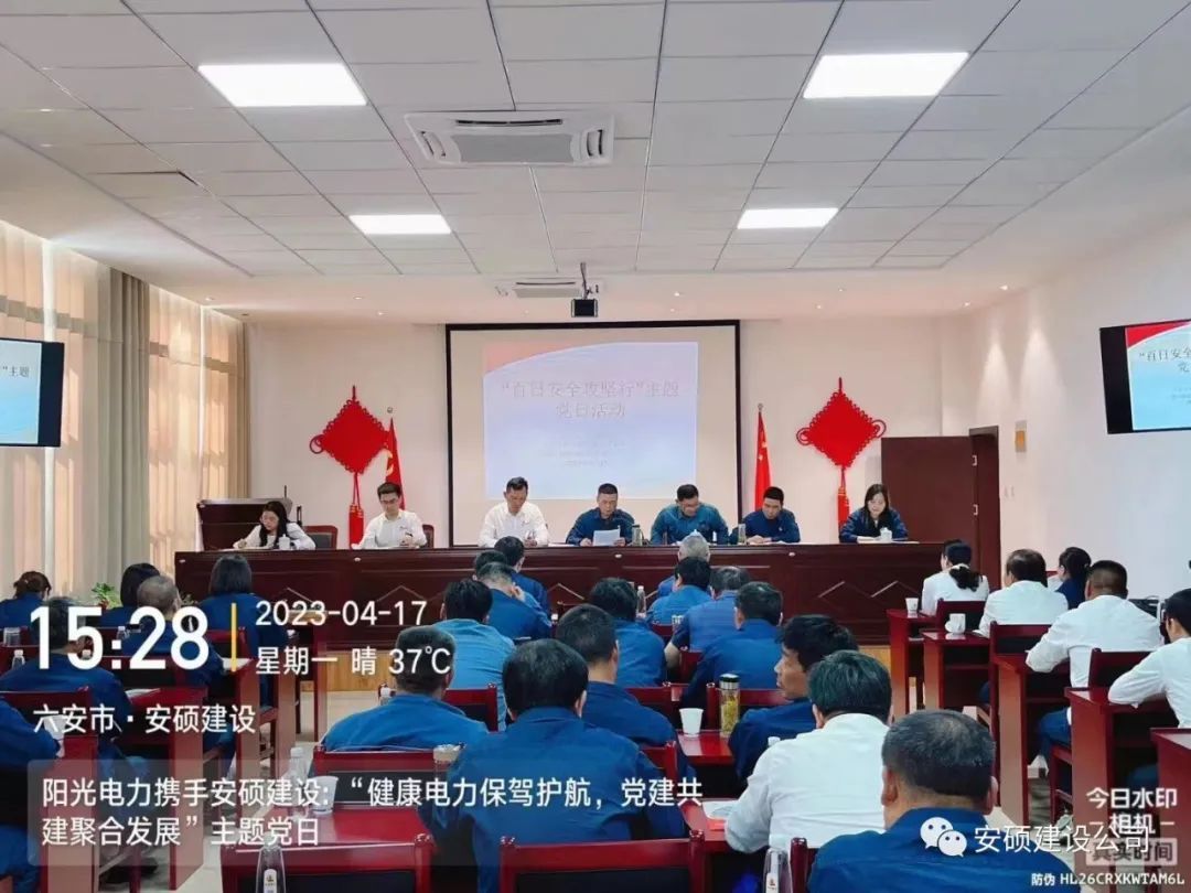 安全工作是电力工程建设工作的基础,也是电力系统安全的保障。不怕千日紧,只怕一时松。4月17日下午,阳光电力携手安硕建设党支部开展主题党日活动,为公司党员干部职工讲授了一堂内容丰富、生动的安全课,这也是安硕建设充分发挥党建工作优势,严格落实安全责任、强化安全教育、规范作业行为,深化“党建+安全生产”工程的一个缩影。